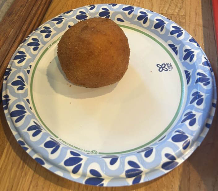 To begin our meal, we ordered an arancini. The dish consisted of a breaded and deep-fried rice ball filled with a savory mixture of meat, cheese, and peas. The crispy exterior had a beautiful golden orange hue, fitting for its name, as arancini means “orange” in Italian. The outer layer had a satisfying crispness from the frying process, while the inside was a perfect blend of soft rice and warm filling. Pro tip: request a side of their marinara sauce for dipping, or do what Margaret and I prefer, which is to dip each bite into the sauces from your other entrees for added flavor.