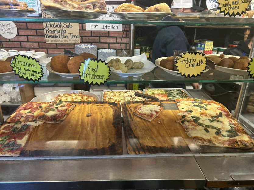 t this counter-order establishment, there are no waitstaff. However, the counter staff makes an effort to create a welcoming atmosphere, as if you’re dining with family or friends. A team of knowledgeable employees bustles behind glass cases displaying their various options of pizza, pasta, salad, and sandwiches. During busy times, it may seem chaotic, with customers calling out their orders and workers jostling for position at the lone register. But don’t worry, the staff is more than capable of answering any questions or fulfilling special requests. They take pride in their product and strive to make your experience enjoyable.